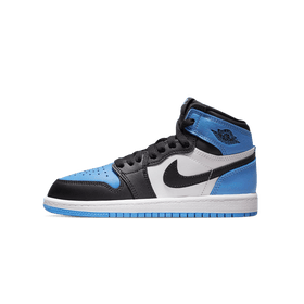 Inspired by Michael Jordan’s alma mater, the Air Jordan 1 Retro High OG ‘UNC Toe’ brings back the distinctive color blocking originally featured on the ‘Bred Toe’ AJ1 from 2018. The high-top utilizes an all-leather upper with white quarter panels and contrasting hits of black on the signature Swoosh and forefoot overlay. University Blue accents make their way to the toe box, heel and collar flap, marked with a retro Wings logo on the lateral side. A woven Nike tag atop the breathable nylon tongue delivers an OG-inspired touch. Lightweight cushioning arrives via a white rubber midsole with an Air-sole heel unit encapsulated in a polyurethane wedge. Underfoot, a blue rubber outsole provides durable traction with every step.